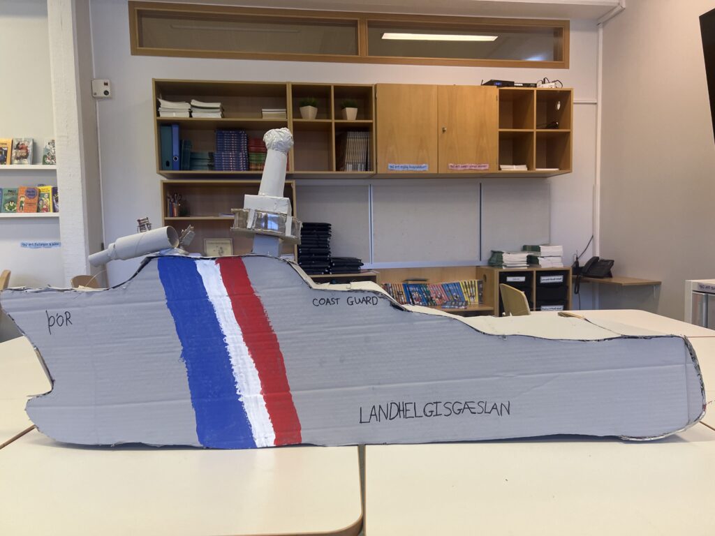 Þau fengu þá áskorun að búa til líkan af varðskipaflota Íslands úr afgöngum heimilis þeirra af pappa og öðrum efnivið.