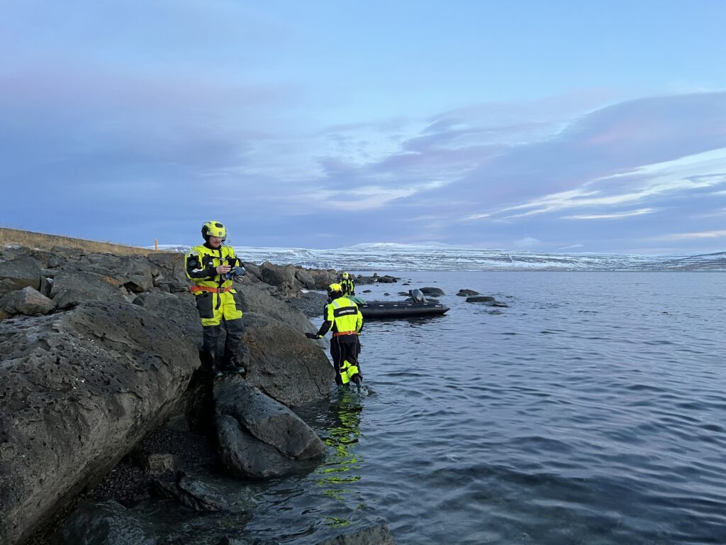 Áhöfnin á varðskipinu Þór var kölluð út í gær til að kanna aðstæður í fjörunni við Illdranga í Ísafjarðardjúpi en þar hafði hval rekið á land. Áhöfnin sendi léttbát frá skipinu til að kanna aðstæður umhverfis hræið en um nokkuð langan búrhval var að ræða.