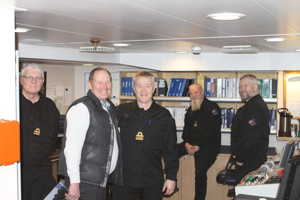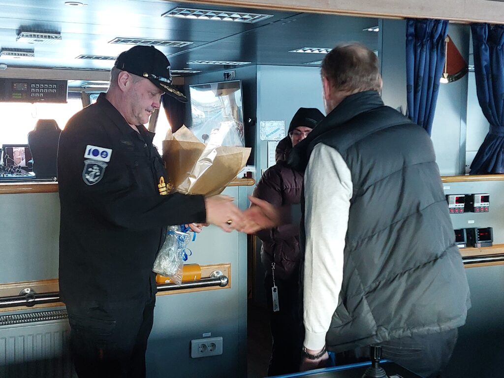 Sigmundur F. Þórðarson, formaður íþróttafélagsins Höfrungs, kom færandi hendi með blómvönd í tilefni aldarafmælisins. Höfrungur fagnaði einmitt 100 ára afmæli fyrir rétt rúmu ári en félagið gaf áhöfninni jafnframt könnu sem búin var til í tilefni 100 ára afmælis Höfrungs.