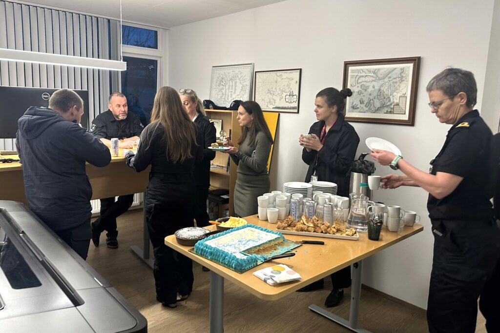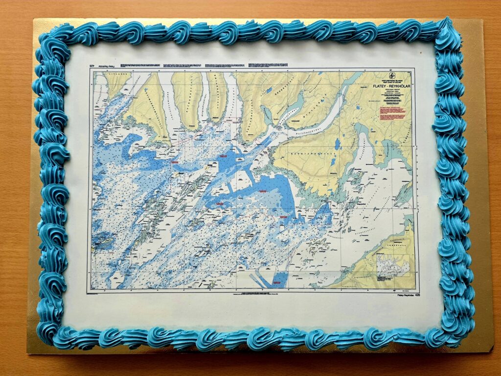 Meginþungi verkefna sjómælinga- og siglingaöryggisdeildar Landhelgisgæslunnar eru dýptarmælingar með fjölgeislamæli og svo í framhaldi þeirra uppfærsla og viðhald á sjókortum sem í gildi eru, en þau eru um 90 talsins. Á síðasta ári voru t.a.m. uppfærð eða leiðrétt 56 sjókort, ýmist með nýjum dýptarupplýsingum eða upplýsingum um breytingu á mannvirkjum og/eða sjómerkjum. Það er því ekki á hverjum degi sem ný sjókort eru gefin út og því þótti við hæfi að fagna áfanganum með köku, sem að sjálfsögðu var skreytt með mynd af hinu nýja sjókorti nr. 428.