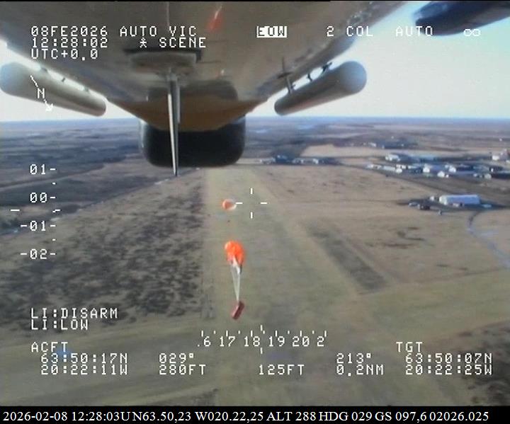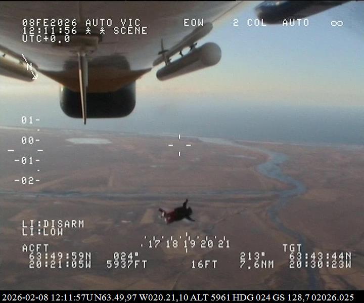 Á sunnudag var farið með 9 meðlimi sveitarinnar í flug og stukku 7 fallhlífastökkvarar úr vélinni í um 6000 feta hæð yfir Hellu. Að auki var vörum varpað úr vélinni á sama stað en í lægri hæð.