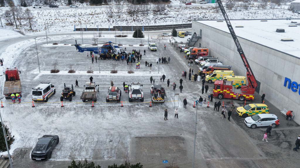 Þyrlusveit Landhelgisgæslunnar lenti á bílastæðinu við Glerártorg í hádeginu í gær í tilefni 112 dagsins á Akureyri.