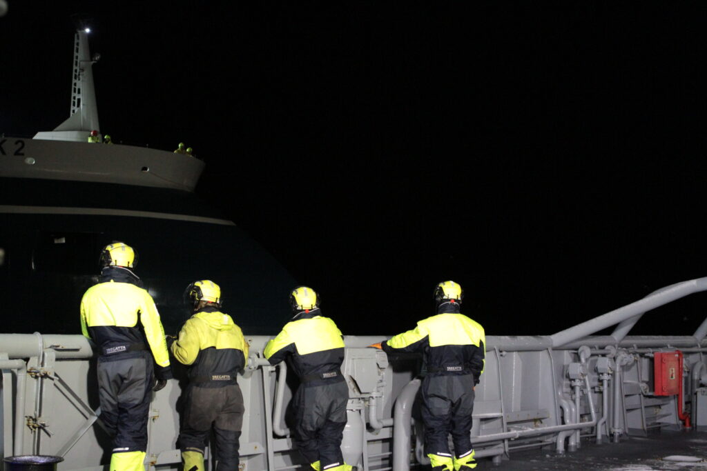 Næsta morgun hélt aðgerðin áfram og vel gekk að losa veiðarfærin úr skrúfunni. Að því búnu staðfestu kafararnir að skrúfan væri óskemmd og enginn leki sjáanlegur.
